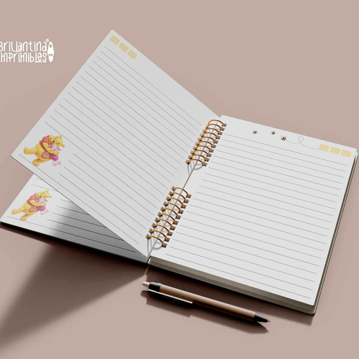 Cuaderno de notas rayado - Modelo WINNIE POOH